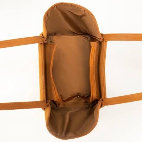 Add effortless style to your everyday look with this tan faux suede-finish tote bag. Designed with dual top handles, a spacious main compartment, and a secure inner zip pocket for essentials. Perfect for work, errands, or weekend outings.